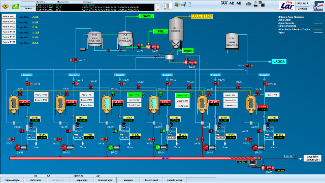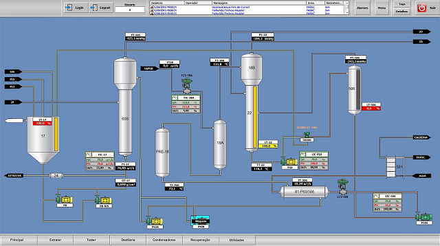 > Programação de recursos de gerenciamento de sistemas como alarmes, receitas, históricos, relatórios e rastreamento das operações;